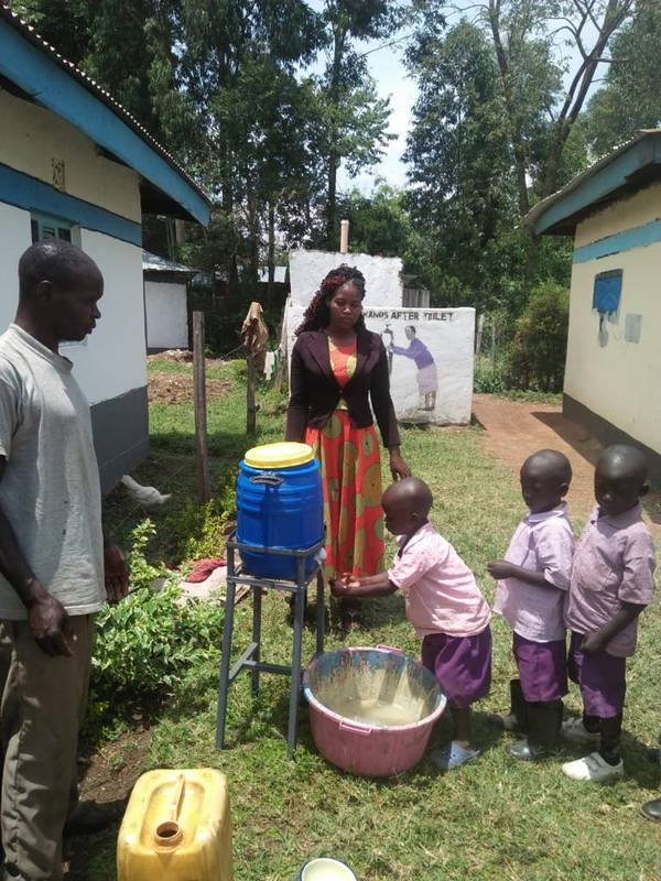Vorbildlich und vorausschauend, waschen sich die Kinder im St. LillyNikki und Synesius Centre in Lwanda die Hände.