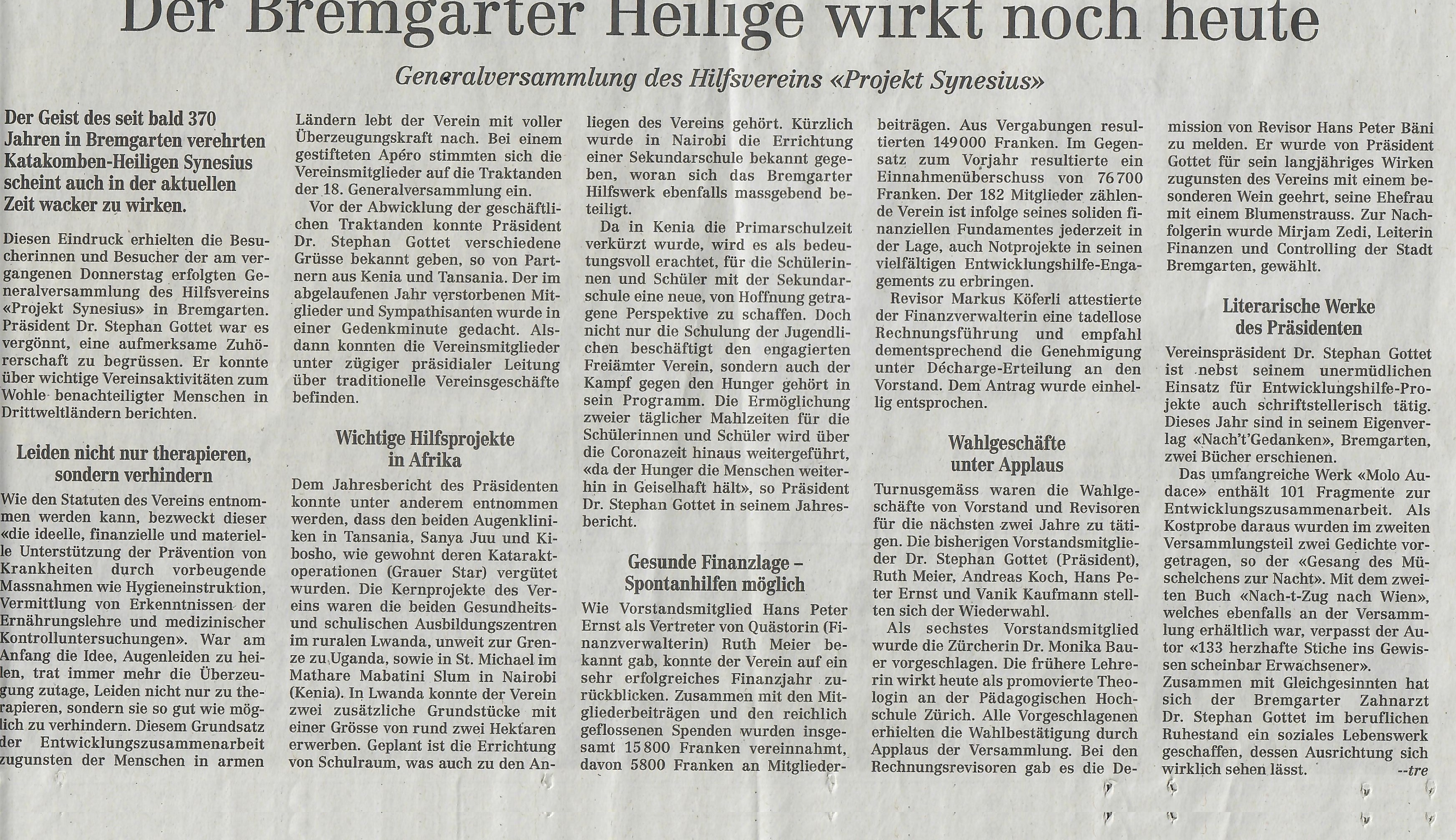 Der Bremgarter Heilige wirkt noch heute, Generalversammlung in Bremgarten."